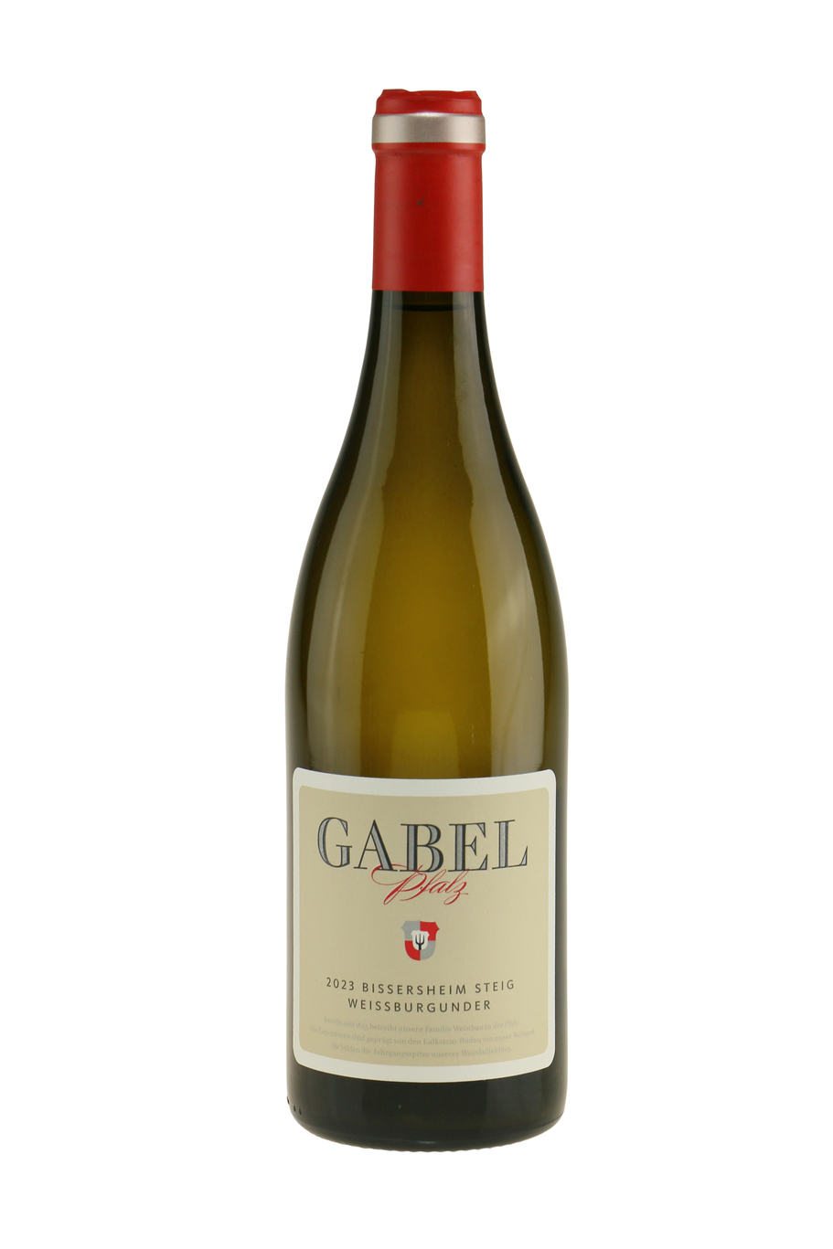 Det er ikke nogen hemmelighed, at næstefter pinot noir, så er weissburgunder Gabels store fokus. Steig er en af de fornemme lagenweine, og kommer fra 40-år gamle stokke på en vinmark tilplantet af Olivers bedstefar. Druernes høstes i hånden af flere omgange for at sikre optimal modenhed. Den gærer naturligt (uden tilsat gær) på tonneaux (store fade) og tappes ufiltreret. En vin, der på mange måder kan lede tankerne hen på (stor) hvid Bourgogne, blot tilsat lethed, spræl og liv samt et ekstra floralt element. En oplevelse! Og måske en overraskelse, hvis man er ubekendt med potentialet i weissburgunder.