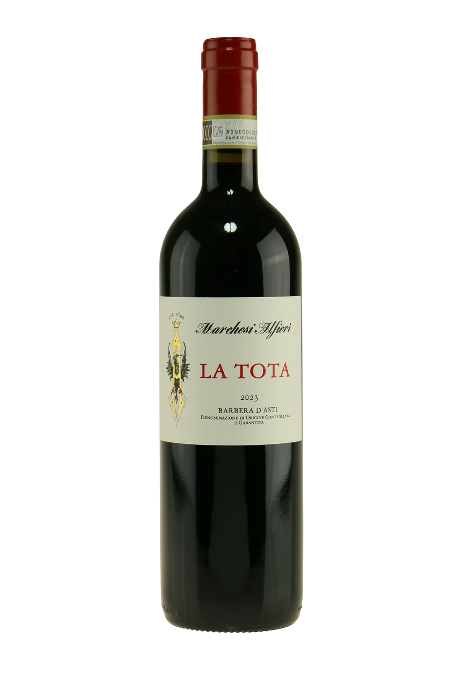 La Tota fra Marchesi Alfieri er en italiensk rødvin lavet på 100% Barbera. Druerne kommer fra flere af Alfieris parceller i Piemonte, med varierende jordbund, orientering og alder på vinstokkene. Derfor høstes og vinificeres hvert plot også separat. Inden aftapning lagres vinen omtrent 1 år på franske egetræsfade af både 225 og 500 liter, og ligger så cirka 6 måneder på flasken før den frigives.