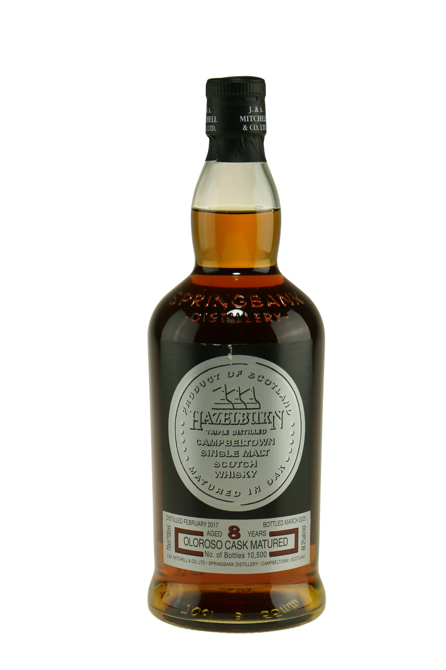 Springbanks urøgede pendant, Hazelburn, har altid gjort det godt på sherryfad. Lige landet er denne 8 år gamle limited edition, som har tilbragt alle sine år på oloroso-fade. Den er tappet ved 48,2% alkohol.